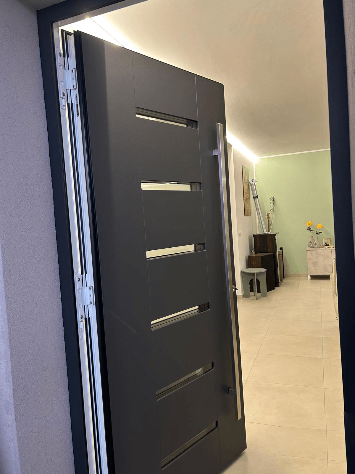 Portoni d’ingresso in alluminio, progettati per garantire sicurezza, isolamento e design. Soluzioni su misura che uniscono estetica moderna e massima affidabilità.